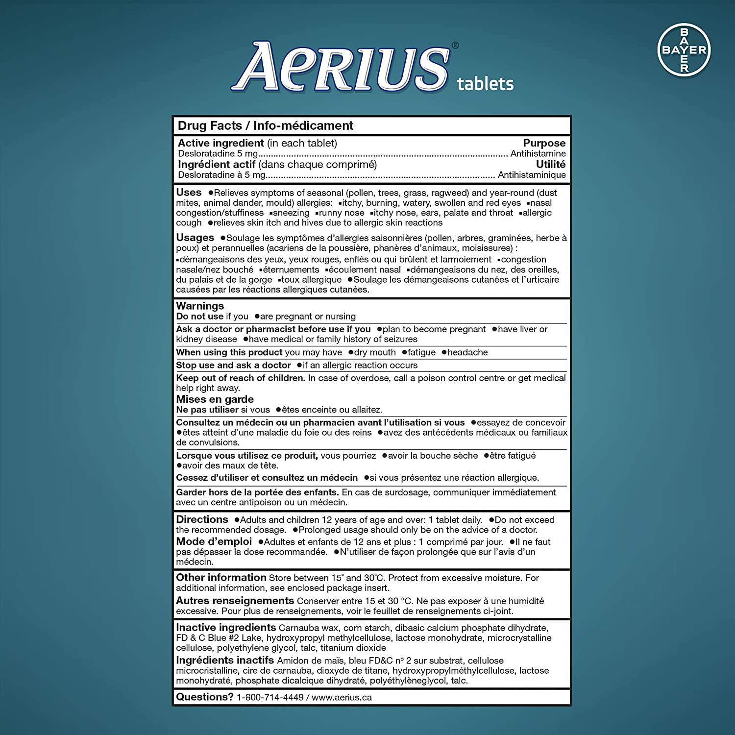 AERIUS (5 mg desloratadine) is an antihistamine that delivers multi-symptom allergy relief for 24 hours. Its long-lasting action helps to relieve your allergy symptoms so you can do the things you like, without your allergy symptoms getting in the way. AERIUS® is non-drowsy so it can help you function normally, both at school and at work.