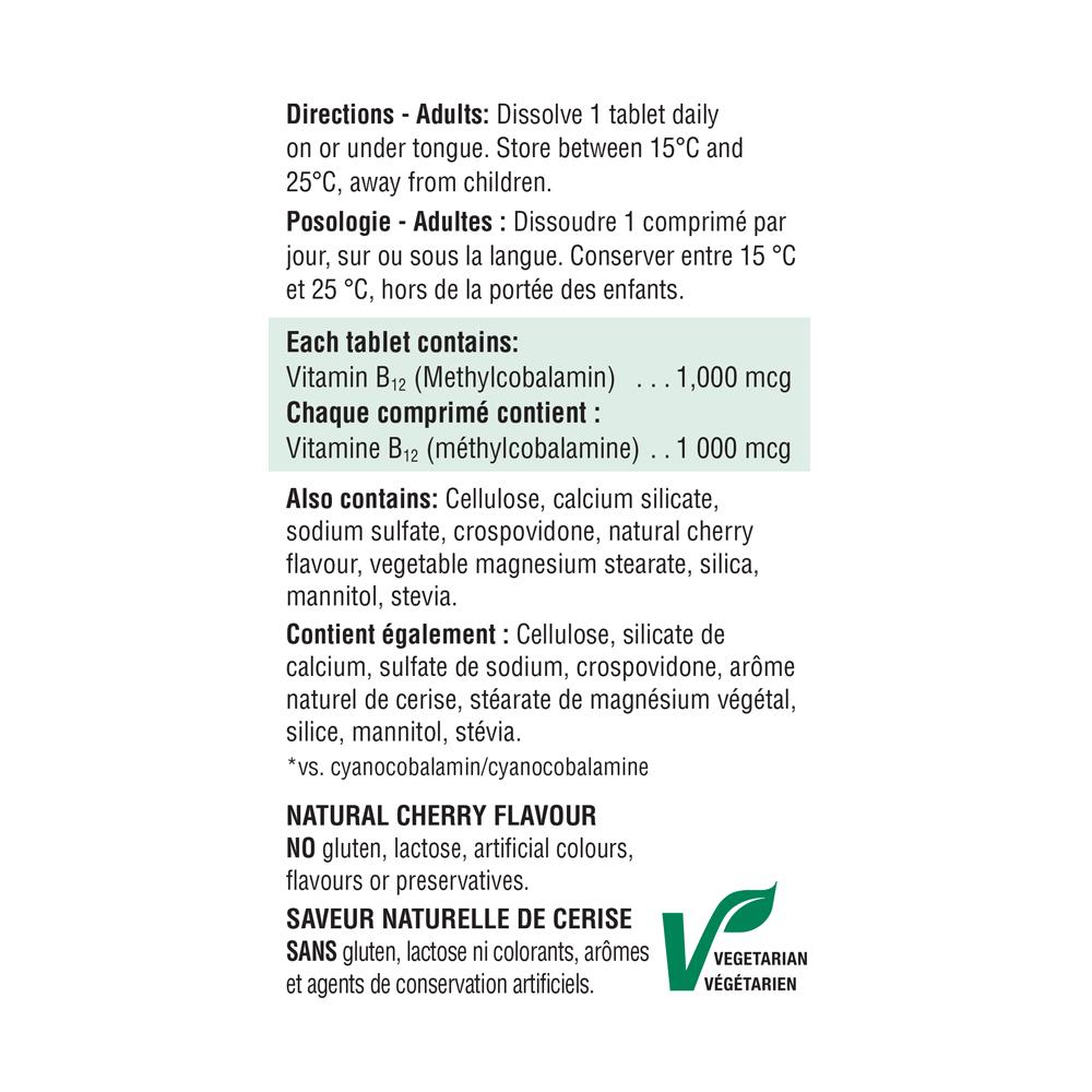 Medicinal Ingredients: Vitamin B12 (Methylcobalamin) 1,000 mcg