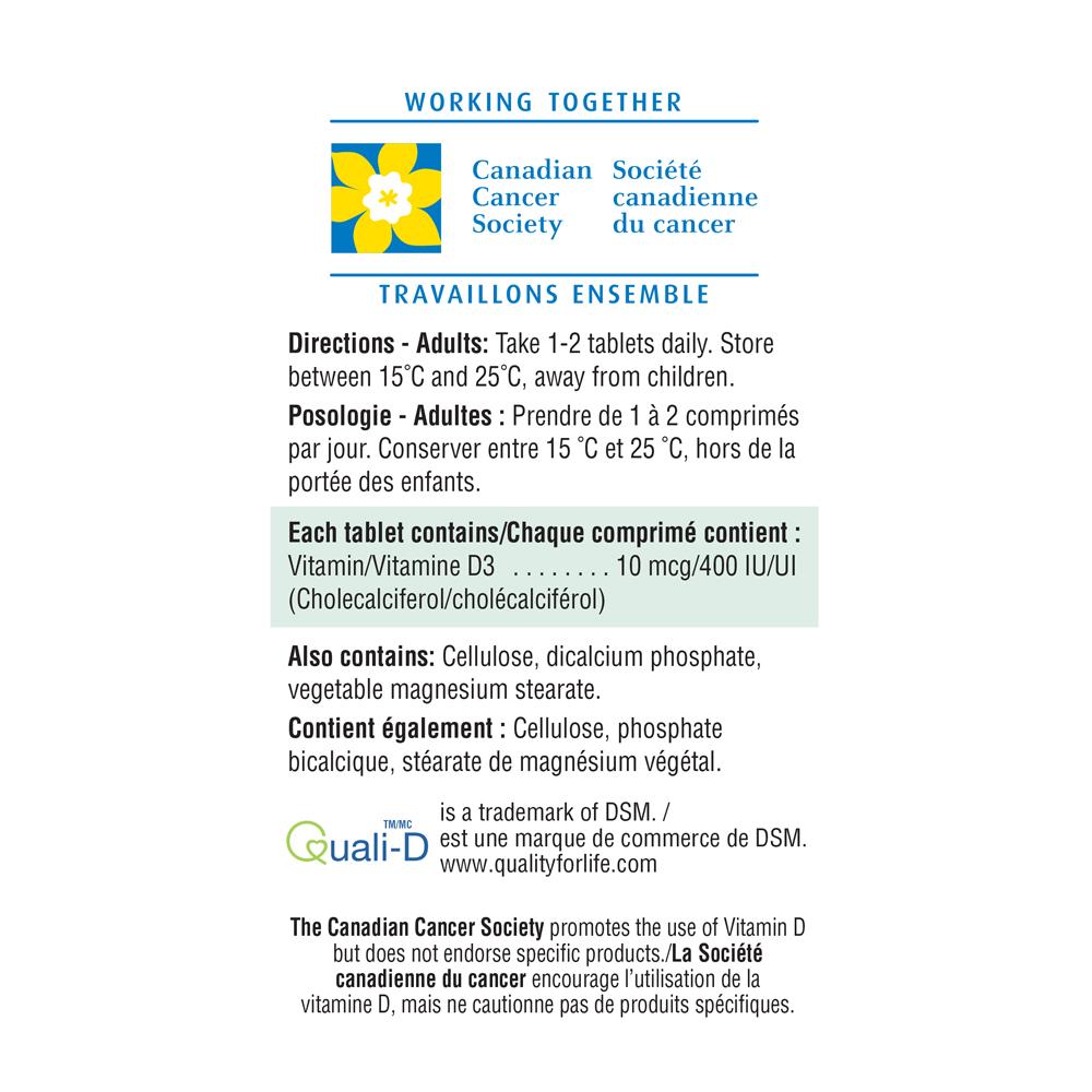Medicinal Ingredient: Vitamin D3 (Cholecalciferol)Â 10mcg/400 IU