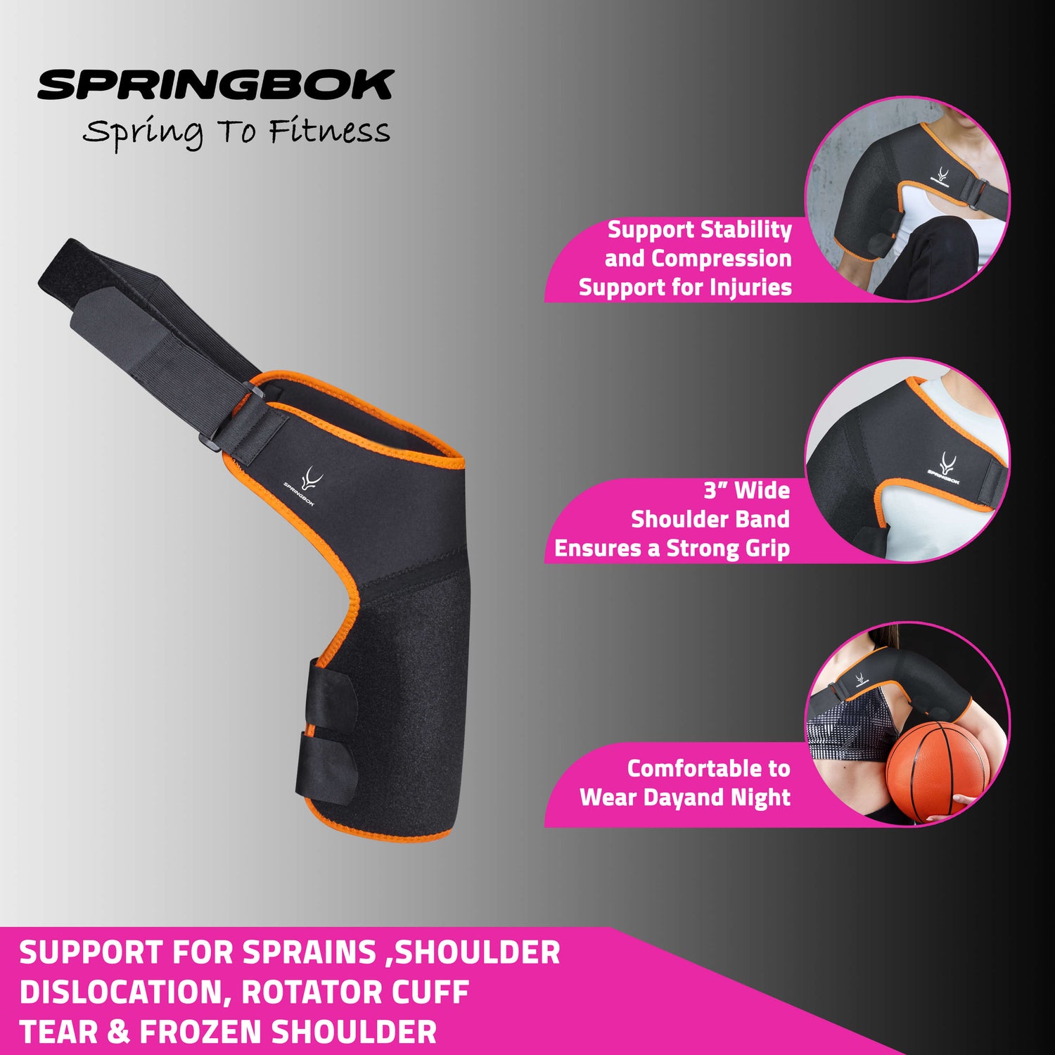 • High Quality: Springbok Shoulder Brace Support is made of lightweight breathable neoprene, moisture wicking material. Neoprene fabric offer an extra-strength latching strap and a comfortable fit ensuring that your shoulder muscles and joints feel less pressure in sports and daily activities