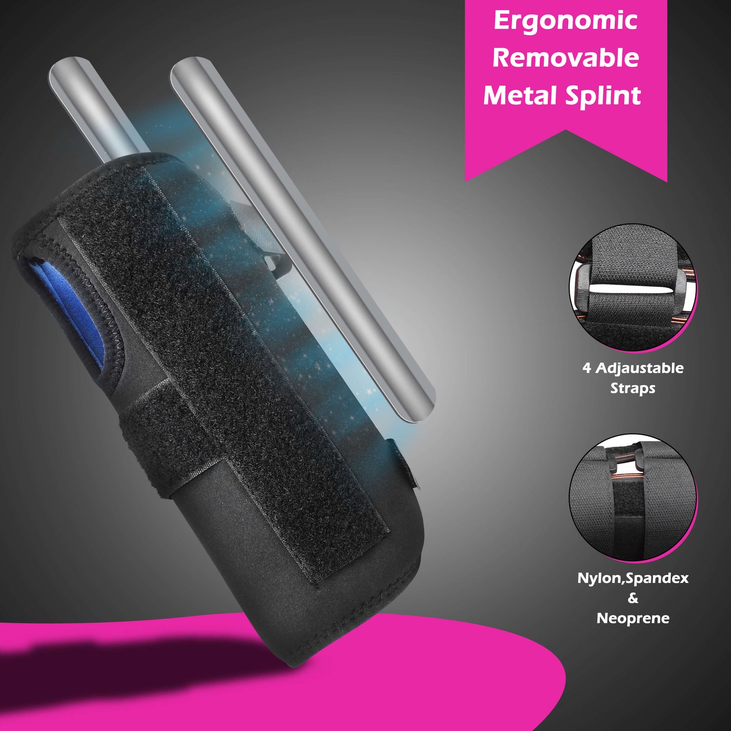 • Removable Metal Splint : The wrist brace's curved inner metal plate limits wrist and palm movement to aid recovery and prevent further injury.